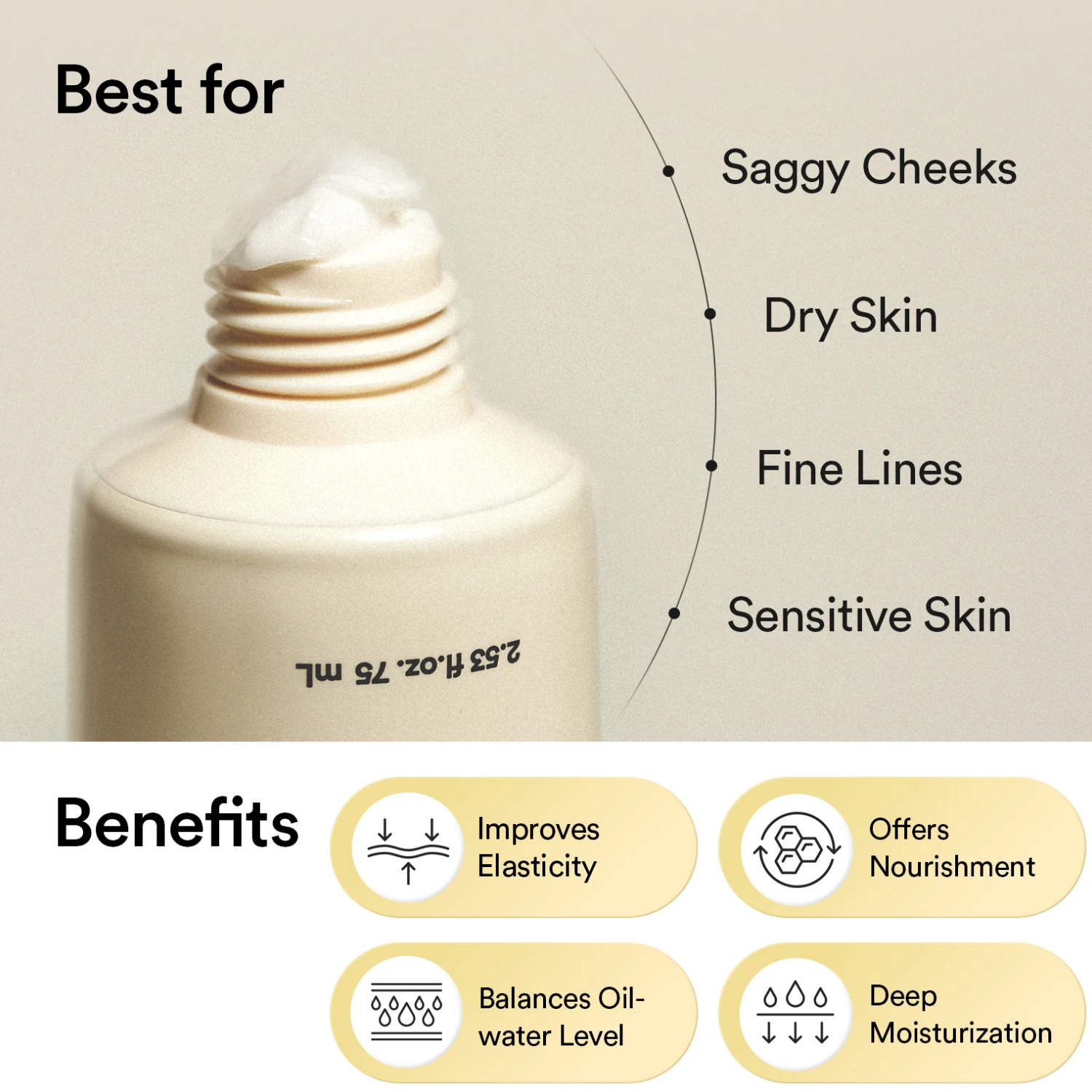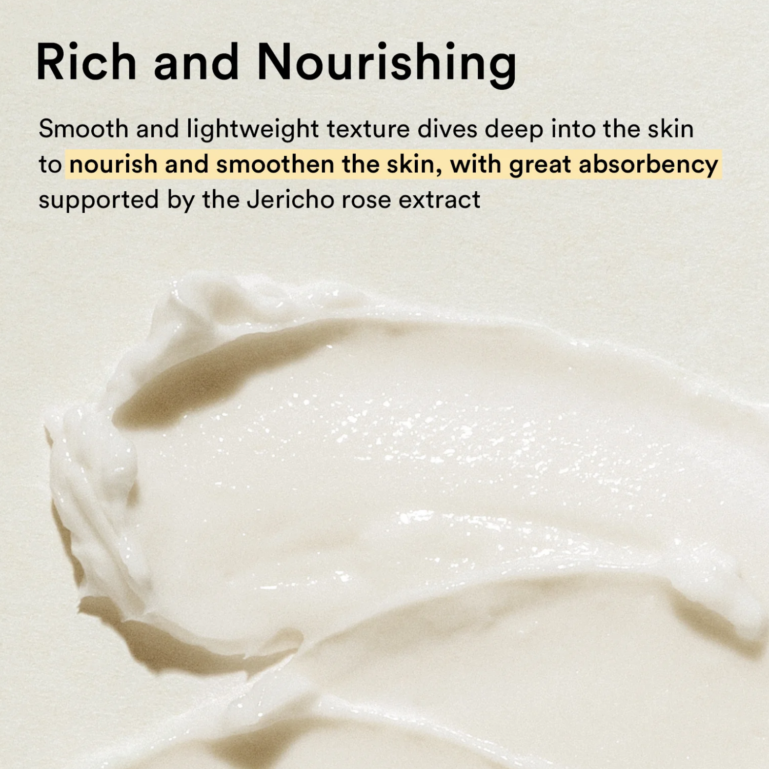 ABIB Jericho Rose Cream Nutrition Tube is an ultra-nourishing moisturizer designed to restore hydration, softness, and resilience to dry or depleted skin. Enriched with Jericho Rose (Anastatica Hierochuntica) Extract, Shea Butter, Coconut Oil, and Jojoba Esters, this rich cream helps lock in moisture while strengthening the skin barrier. Panthenol, Lactobacillus Ferment, and Tocopherol soothe, protect, and improve overall skin texture. Ideal for dry, rough, or tired skin needing deep nourishment. Apply evenly to the face as the final step of your skincare routine. Use morning and night. Ideal for dry or stressed skin.