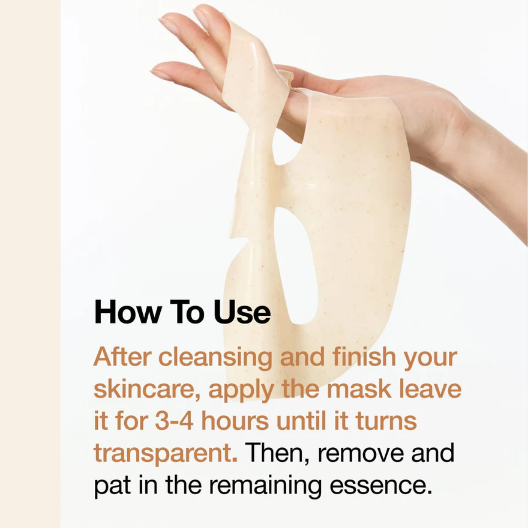 Ingredients: like Hyaluronic Acid and Ceramide NP work together to moisturize and strengthen the skin's barrier, leaving your complexion smooth, supple, and glowing. Ideal for all skin types, this mask is perfect for achieving a more radiant and youthful appearance. Paraben-Free Sulfate-Free Alcohol-Free Silicone-Free Fungal Acne Safe Essential Oil-Free How to Apply Use the mask after toner, serum, and cream for enhanced absorption. Leave it on for at least 3 hours or overnight for deeply hydrated, calm, and look revitalized skin by morning. Ingredients Oryza Sativa (Rice) Bran Water, Water, Dipropylene Glycol, Hydrogenated Polydecene, 1,2-Hexanediol, Glycerin, Niacinamide, Acrylates Copolymer, Ceratonia Siliqua (Carob) Gum, Xanthan Gum, Carrageenan, Hy droxyacetophenone, Oryza Sativa (Rice) Extract, Sucrose, Allantoin, Potass ium Chloride, Oryza Sativa (Rice) Hull Powder, Sodium Polyacrylate, Dipota ssium Glycyrrhizate, Cellulose Gum, Gellan Gum, Caprylyl Glycol, Adenosine, Butylene Glycol, Panthenol, Ethylhexylglycerin, Sodium Phytate, Soluble Co llagen, Sodium Hyaluronate, Hydroxypropyltrimonium Hyaluronate, Phyto sphingosine, Oryza Sativa (Rice) Seed Protein, Hydrolyzed Rice Protein, Ce ramide NP, Sodium Acetylated Hyaluronate, Hydrolyzed Hyaluronic Acid, Hy aluronic Acid, Sodium Hyaluronate Crosspolymer, Hydrolyzed Sodium Hya luronate, Potassium Hyaluronate, Iron Oxides (CI 77492), Iron Oxides (CI 77491).