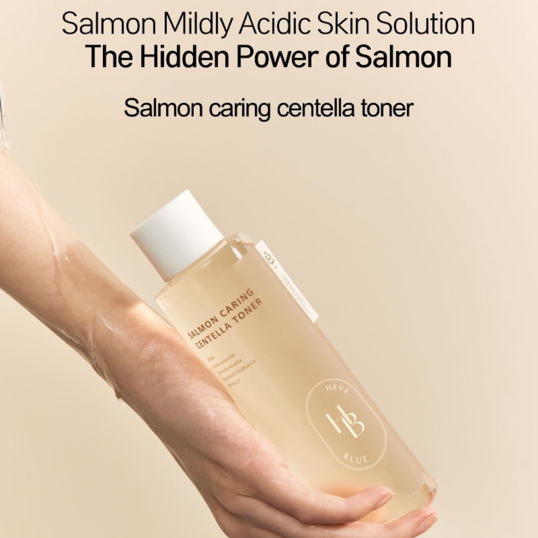 Introducing HEVEBLUE Salmon Caring Centella Toner, your go-to solution for soothing and hydrating sensitive skin. Packed with Centella Asiatica Leaf Water and Salmon Egg Extract, this toner helps repair the skin barrier and boost hydration. Enriched with skin-loving ingredients like Panthenol and Sodium Hyaluronate, it leaves your skin feeling refreshed and balanced. Simply apply after cleansing, or use with a cotton pad for a gentle wipe.