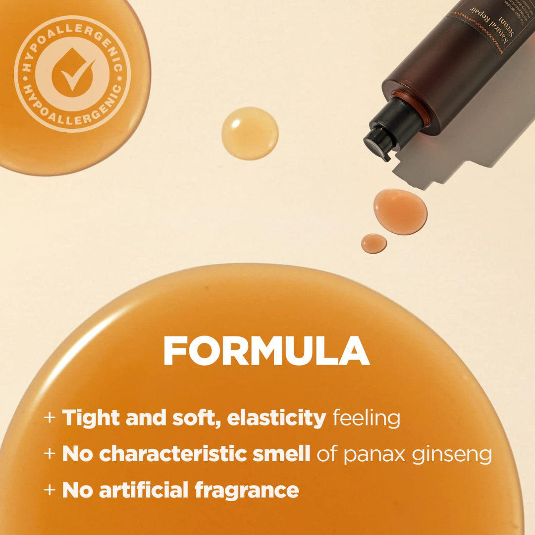 The HYGGEE Natural Repair Serum is a powerful treatment featuring 66.7% Panax Ginseng Root Extract, known for its antioxidant properties that help firm and revitalize the skin. Enriched with skin-soothing ingredients, it promotes elasticity for a more youthful and supple complexion. Simply pat a moderate amount onto your skin after cleansing for optimal hydration and anti-aging benefits. Enjoy a paraben-free, sulfate-free, and essential oil-free formula that nourishes your skin.