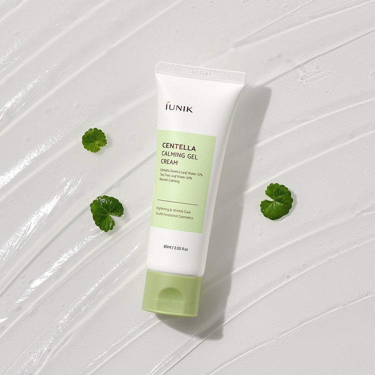 IUNIK Centella Calming Gel Cream is a lightweight moisturizer designed to soothe and hydrate sensitive skin. With 68.5% Centella Asiatica Leaf Water and Tea Tree Leaf Water, it calms irritation while Niacinamide and Sodium Hyaluronate brighten and lock in moisture. This gel cream is perfect for oily and sensitive skin types, promoting a refreshed and balanced complexion. After applying toner, simply massage a suitable amount onto your skin for optimal absorption.