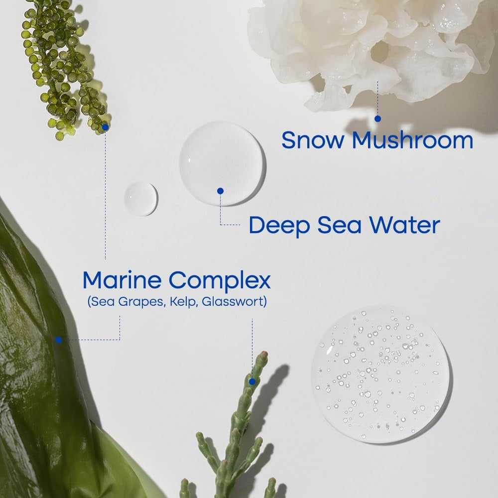 Ingredients: like Betaine and Ectoin, this serum helps to retain moisture and soothe the skin. With added peptides and Tremella Mushroom Extract, it promotes skin elasticity and a smooth, plump complexion. Ideal for dry or dehydrated skin, this serum delivers intense hydration and revitalization for a fresh, radiant look. Paraben-Free Sulfate-Free Alcohol-Free Silicone-Free Fragrance-Free Fungal Acne Safe Essential Oil-Free How to Apply After applying toner, apply 2-3 pumps to the face and neck. Gently pat for better absorption. Ingredients Sea Water (66.01%), Butylene Glycol, Propanediol, Glycerin, Water, 1,2-Hexanediol, Caprylic/Capric Triglyceride, Hydrolyzed Glycosaminoglycans, Betaine, Ectoin, Tremella Fuciformis (Mushroom) Extract, Tremella Fuciformis Polysaccharide, Salicornia Herbacea Extract, Laminaria Japonica Extract, Caulerpa Lentillifera Extract, Acetyl Hexapeptide-8, Copper Tripeptide-1, Acrylates/C10-30 Alkyl Acrylate Crosspolymer, Xanthan gum, Allantoin, Adenosine, Tromethamine, Disodium EDTA, Ethylhexylglycerin.