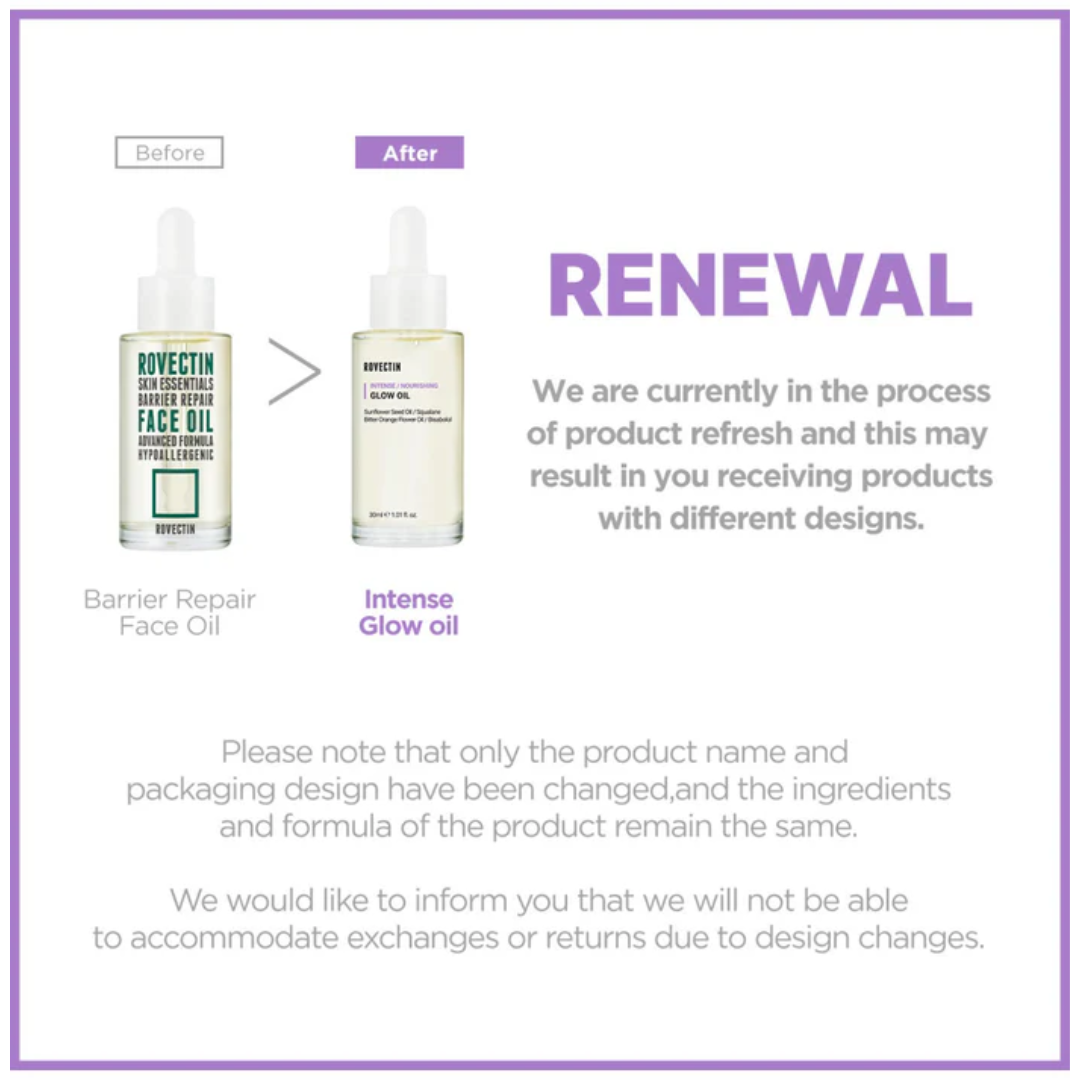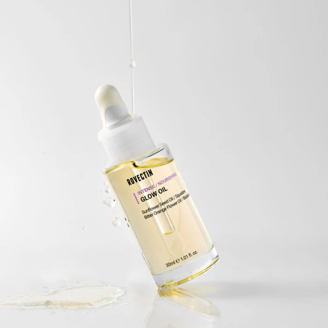 ROVECTIN Intense Glow Oil is a nourishing facial oil that enhances your skin's radiance. Packed with natural oils, it moisturizes, provides antioxidants, and helps repair the skin barrier. This quick-absorbing formula leaves your skin soft, supple, and luminous without a greasy feel. Apply it directly to dry areas or mix it with your favorite creams for a boost of glow.