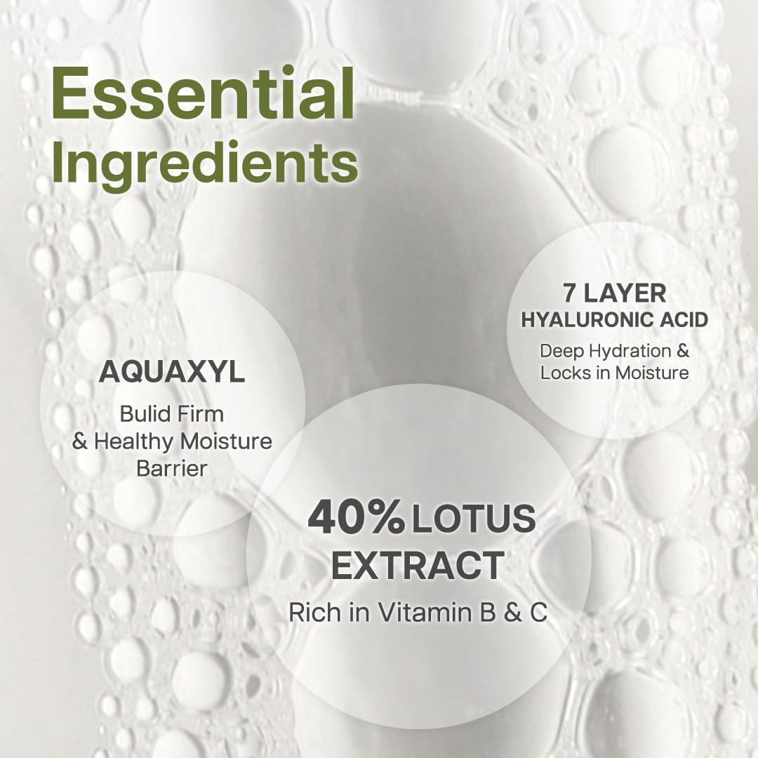 Ingredients: Nelumbo Nucifera Flower Water, Water, Glycerin, Butylene Glycol, Propanediol, 1,2-Hexanediol, Betaine, Nelumbium Speciosum Flower Extract, Nelumbonucifera Leaf Extract, Nelumbo Nucifera Root Extract, Glyceryl Glucoside, Xylitylglucoside, Anhydroxylitol, Xylitol, Glucose, Allantoin, Juniperus Mexicana Oil, Sodium Hyaluronate, Hydroxypropyl Trimonium Hyaluronate, Cynanchum Atratumextract, Magnolia Kobus Bark Extract, Hydrolyzed Hyaluronic Acid, Sodium Acetylated Hyaluronate, Hyaluronic Acid, Sodium Hyaluronate Crosspolymer, Potassium Hyaluronate, C12-14 Pareth-12, Ethylhexylglycerin, Xanthan Gum, Citric Acid, Disodium EDTA, Sodium Citrate.