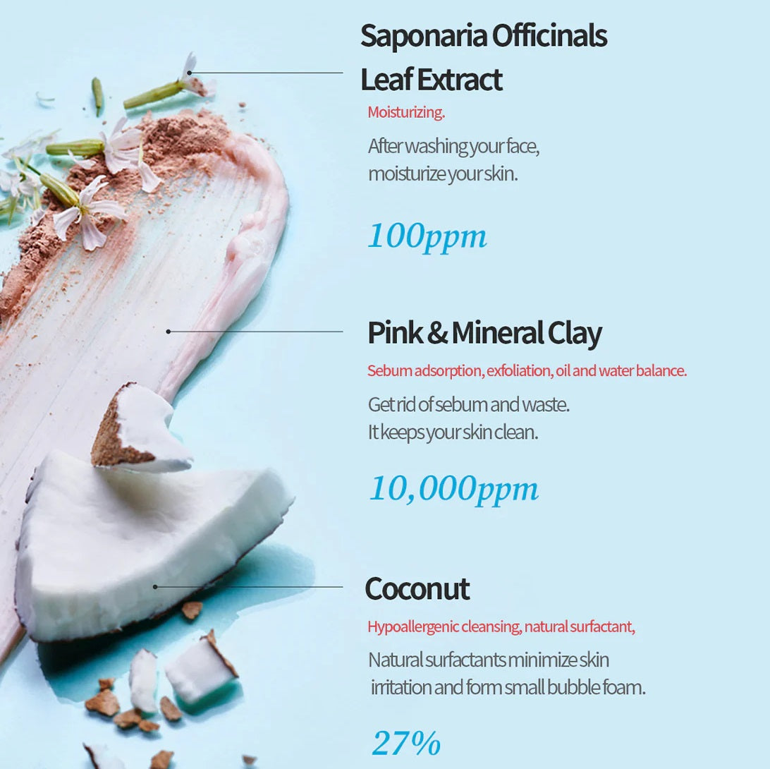 Ingredients: Water, Glycerin, Hydrogenated Palm Acid, Potassium Hydroxide, Potassium Cocoate, Bentonite, Glyceryl Stearate, Butylene Glycol, Polyquaternium-7, Acrylates/C10-30 Alkyl Acrylate Crosspolymer, Calamine, Sodium Phytate, Sodium Benzoate, Saponaria Officinalis Leaf Extract, EDTA, CI 14700.